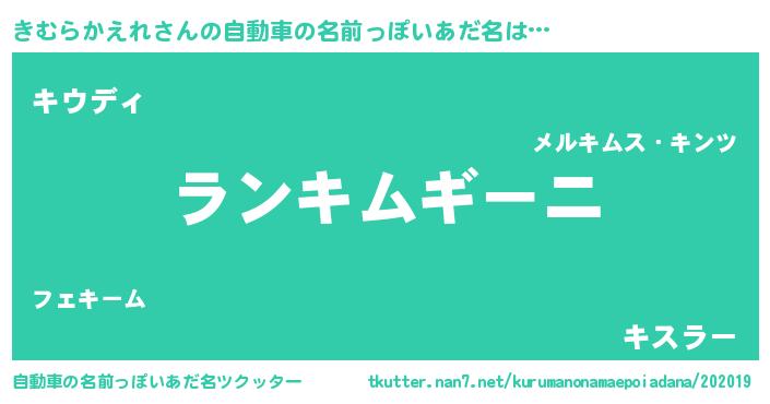 | 意味不明あだ名 | 『住所不定無職きむらかえれ(65歳)』 |