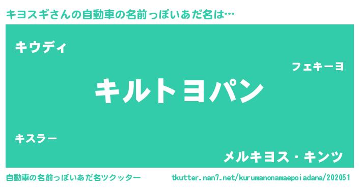 | 女子向けラノベタイトル風あだ名 | 『キヨスギの卵を拾いまして』 |