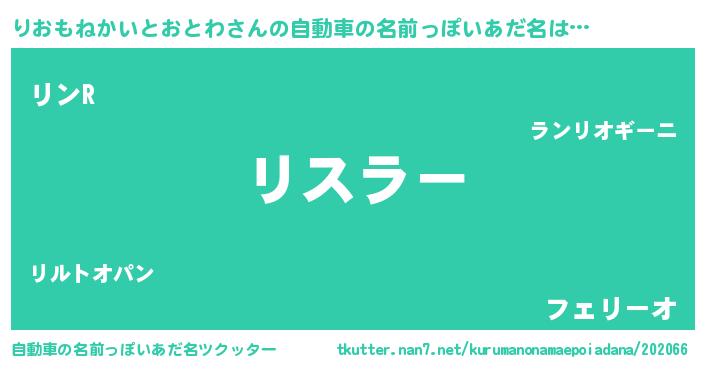 | 欧米人風あだ名 | 『りおもねかいとおとわクリステル』 |