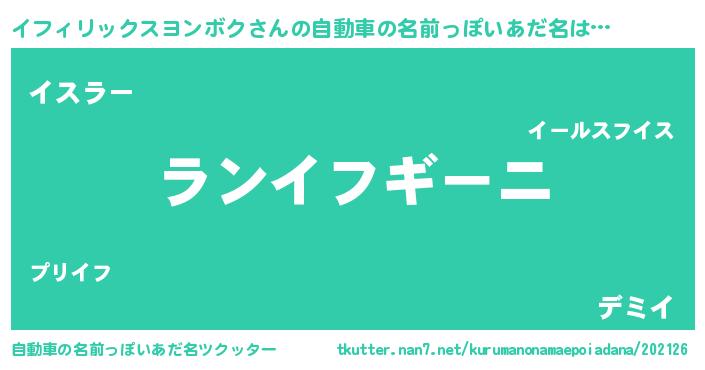 | 欧米人風あだ名 | 『アンジェラ・イフィリックスヨンボク』 |