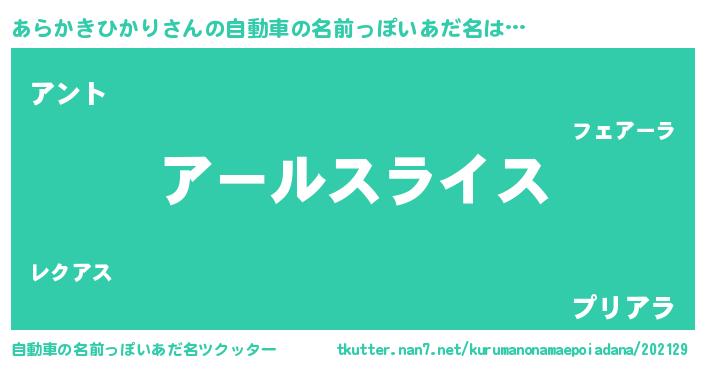 | 欧米人風あだ名 | 『トリンドルあらかきひかり』 |