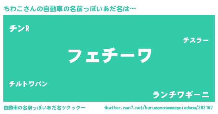 | 欧米人風あだ名 | 『ちわこ・ステッグマイヤー』 |