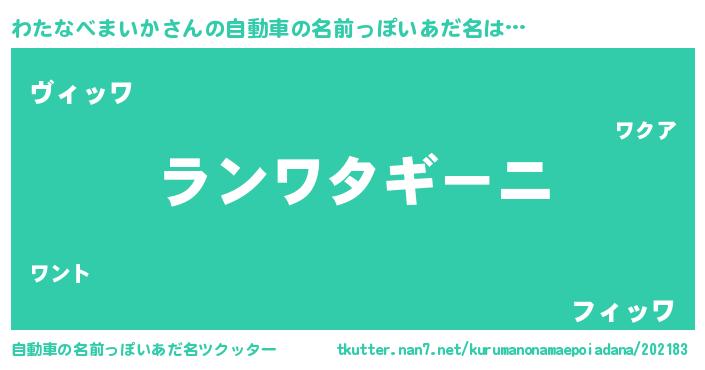 | 欧米人風あだ名 | 『アンジェラ・わたなべまいか』 |