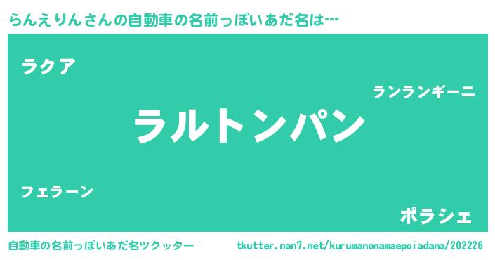 | 胡散臭い通販商品みたいなあだ名 | 『信頼と実績のサプリメント…その名も「らんえりん」』 |