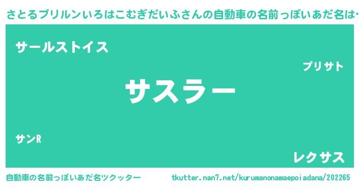 | 欧米人風あだ名 | 『さとるプリルンいろはこむぎだいふクリステル』 |