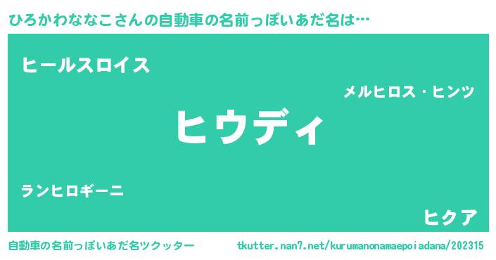| 意味不明あだ名 | 『住所不定無職ひろかわななこ(40歳)』 |