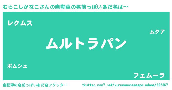 | 欧米人風あだ名 | 『ウサインむらこしかなこ』 |