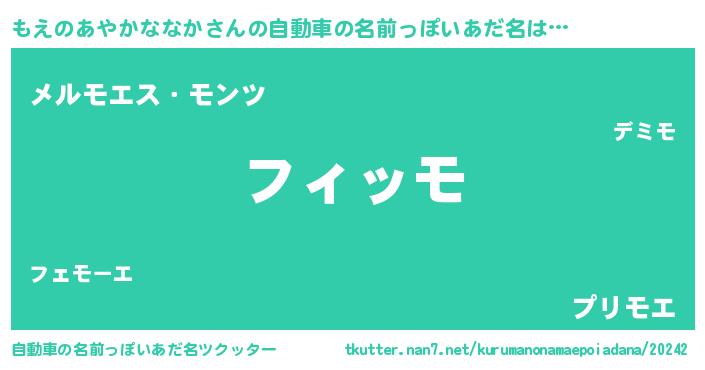 | 女子向けラノベタイトル風あだ名 | 『もえのあやかななか夫妻のなれそめ』 |