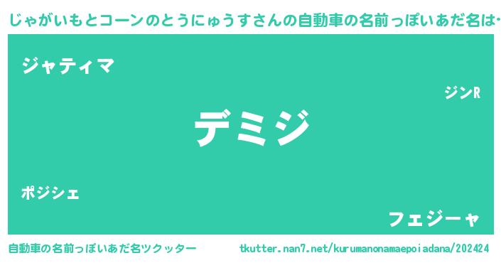 | 欧米人風あだ名 | 『ダルビッシュじゃがいもとコーンのとうにゅうす』 |