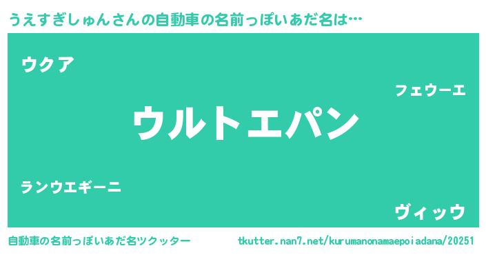 | 胡散臭い通販商品みたいなあだ名 | 『信頼と実績のペンダント…その名も「うえすぎしゅん」』 |