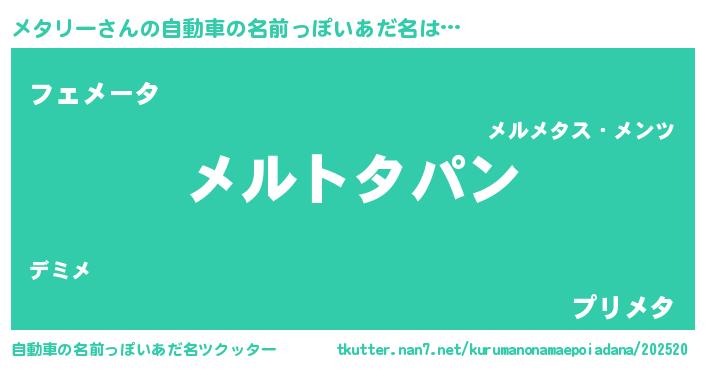 | 意味不明あだ名 | 『とにかく怪しいメタリー』 |