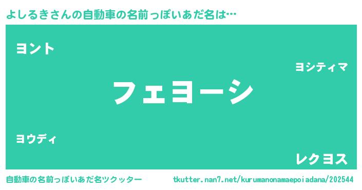 | 欧米人風あだ名 | 『よしるき・ステッグマイヤー』 |