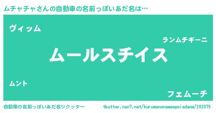 | 男性向けラノベタイトル風あだ名 | 『ムチャチャ~年齢イコール彼女いない歴の魔法使い~』 |