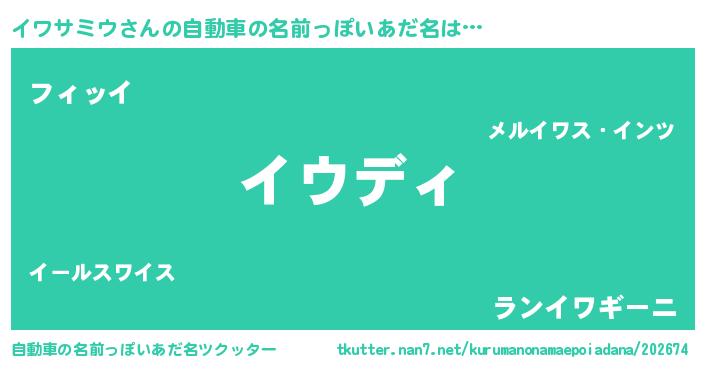 | 意味不明あだ名 | 『住所不定無職イワサミウ(8歳)』 |
