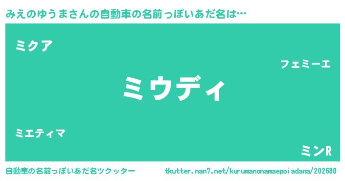 | 意味不明あだ名 | 『住所不定無職みえのゆうま(7歳)』 |