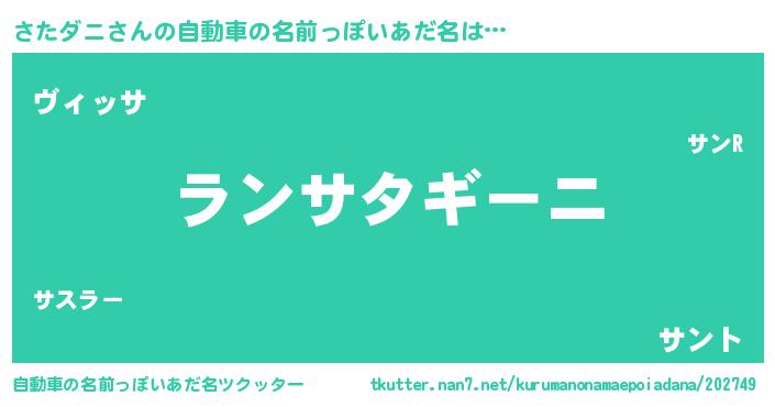 さたダニさんの自動車の名前っぽいあだ名をツクッター!