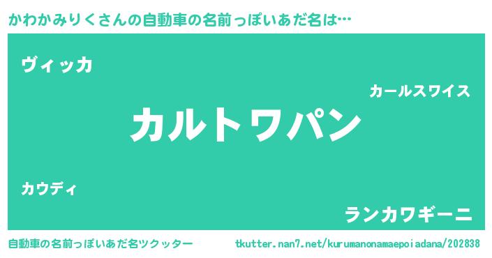 | ヒーロー風カッコイイあだ名 | 『黄金騎士カワ』『ネオカワカミリク』 |