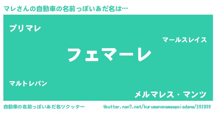 | 意味不明あだ名 | 『ペロリンマレ』『自称マレ』 |
