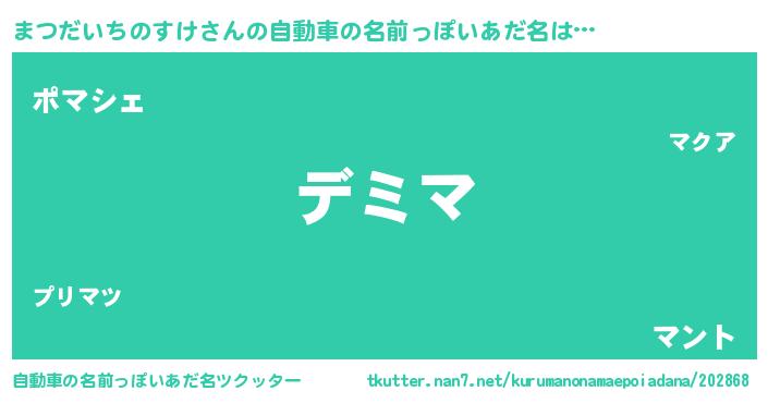 | 男性向けラノベタイトル風あだ名 | 『まつだいちのすけという概念が存在しない退屈な世界 』 |