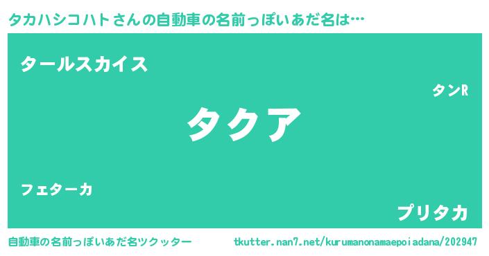 | 女子向けラノベタイトル風あだ名 | 『タカハシコハトの雑貨屋さん』 |