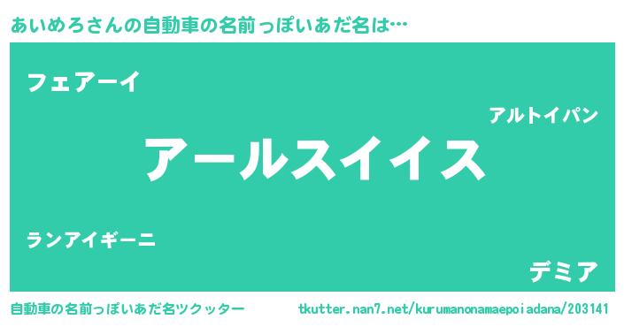 あいめろさんの自動車の名前っぽいあだ名をツクッター!