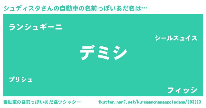 | 意味不明あだ名 | 『永久保存シュディスタ』 |
