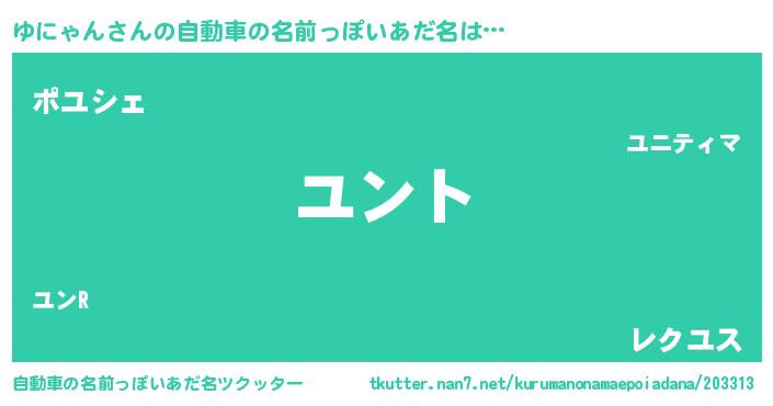 | 男性向けラノベタイトル風あだ名 | 『ゆにゃんの嫁は女の子じゃないと思った?』 |