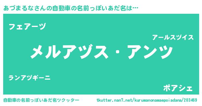 | ヒーロー風カッコイイあだ名 | 『最強戦士アヅマルナ』『仮面アヅダー』 |