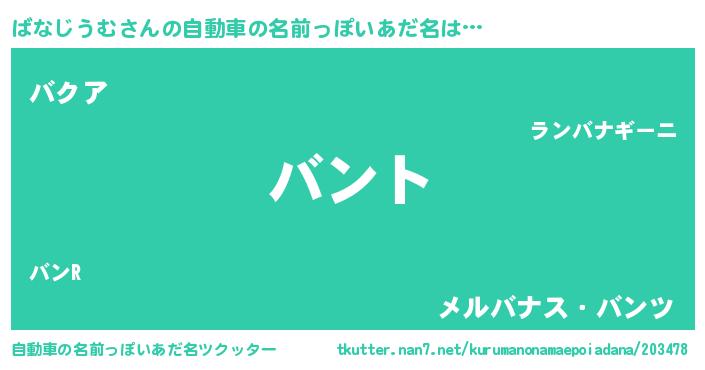 | 男性向けラノベタイトル風あだ名 | 『ばなじうむの嫁は女の子じゃないと思った?』 |
