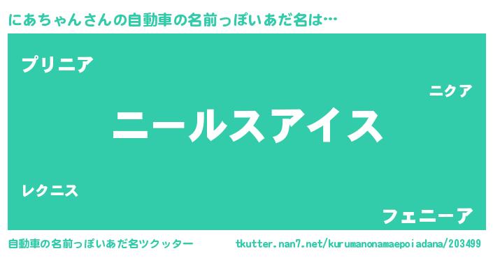 | 胡散臭い通販商品みたいなあだ名 | 『億万長者になれる水晶球…その名も「にあちゃん」』 |