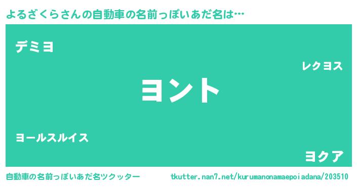 | 男性向けラノベタイトル風あだ名 | 『よるざくらの嫁は女の子じゃないと思った?』 |