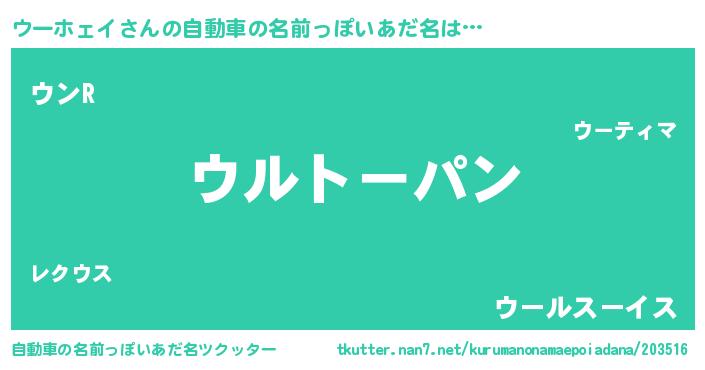 ウーホェイさんの自動車の名前っぽいあだ名をツクッター!