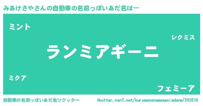 | 男性向けラノベタイトル風あだ名 | 『みあけさやに滅ぼされるだけの簡単なお仕事です』 |