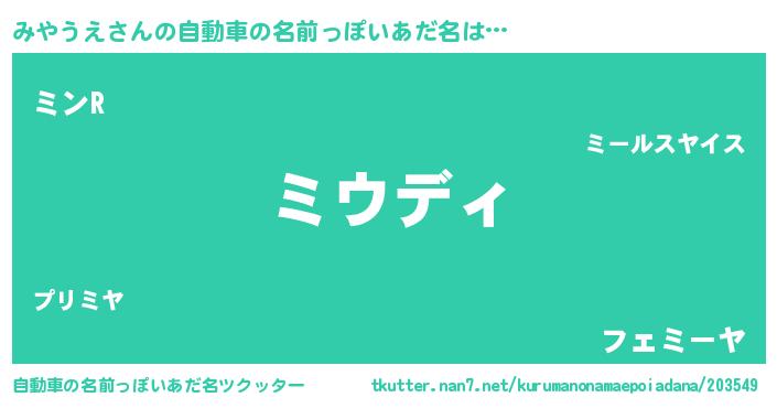 | ヒーロー風カッコイイあだ名 | 『仮面ミヤダー』『慈愛の使者みやうえ』 |