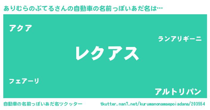 | 意味不明あだ名 | 『自称ありむらのぶてる』 |
