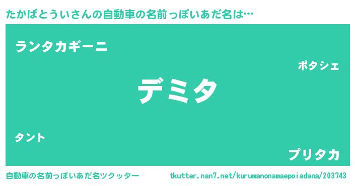 | 胡散臭い通販商品みたいなあだ名 | 『来世でも幸せになれる水素水…その名も「たかばとうい」』 |
