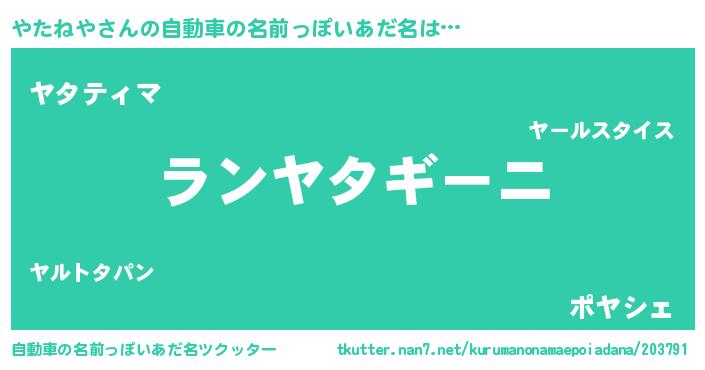 | 欧米人風あだ名 | 『アンジェラ・やたねや』 |