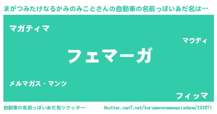 | 恥ずかしいあだ名 | 『プリティーまがつみたけなるかみのみこと』 |