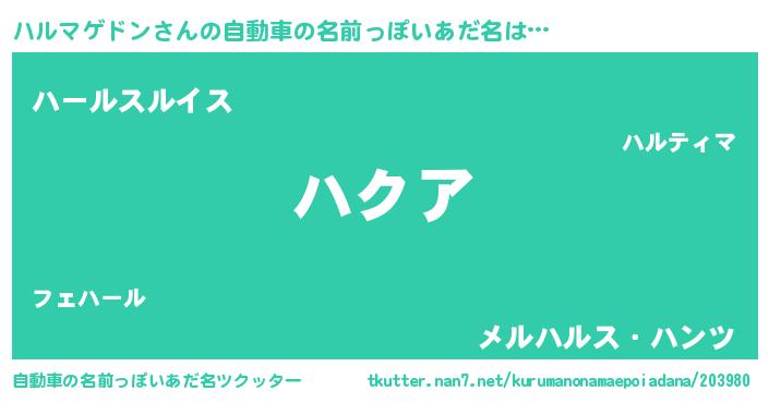 | 意味不明あだ名 | 『ハルマゲドンフォーエバー』 |