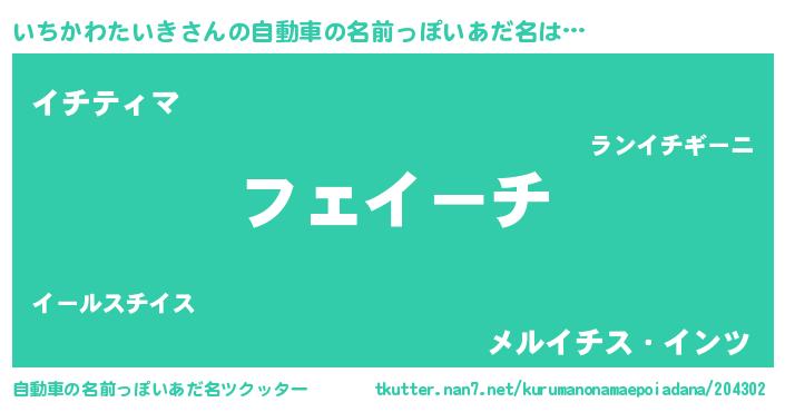 | 男性向けラノベタイトル風あだ名 | 『緋弾のイチカワタイキ』 |