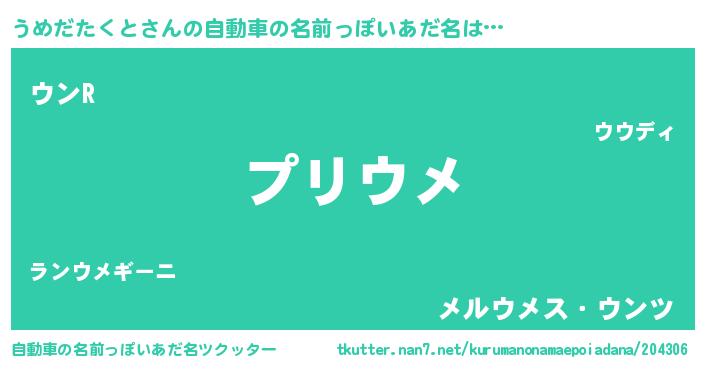 | ポケモン風あだ名 | 『ウメチュウ』『ウックウザ』 |