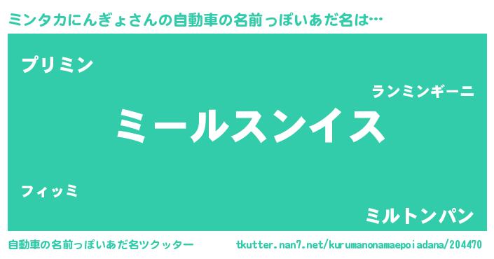 | 欧米人風あだ名 | 『トリンドルミンタカにんぎょ』 |