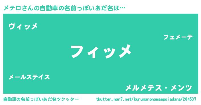 | 男性向けラノベタイトル風あだ名 | 『おまえをオタクにしてやるから、俺をメテロにしてくれ! 』 |
