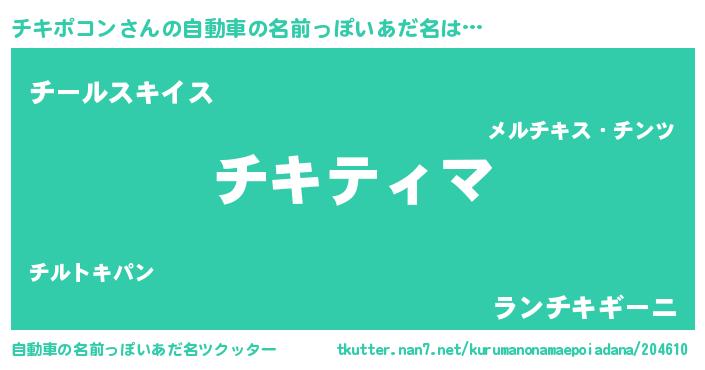 | 意味不明あだ名 | 『ペロリンチキポコン』『自称チキポコン』 |