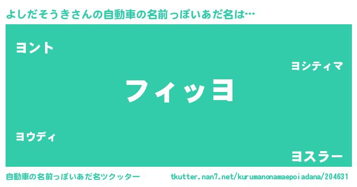 | ポケモン風あだ名 | 『ヨックウザ』『ヒヨシダソウキ』 |