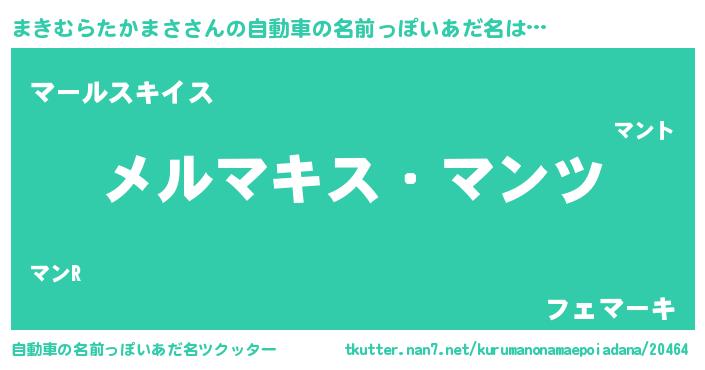 | 意味不明あだ名 | 『自称まきむらたかまさ』 |