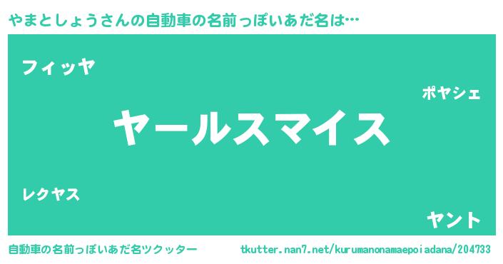 | 男性向けラノベタイトル風あだ名 | 『ヤマトショウスレイヤー』 |