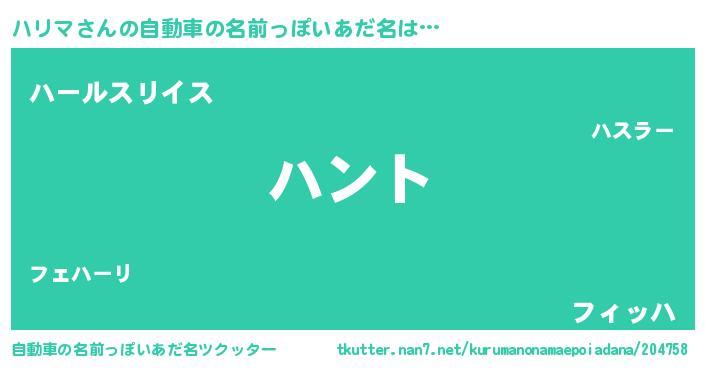 | ヒーロー風カッコイイあだ名 | 『幻影騎士ハリ』『友情の使者ハリマ』 |