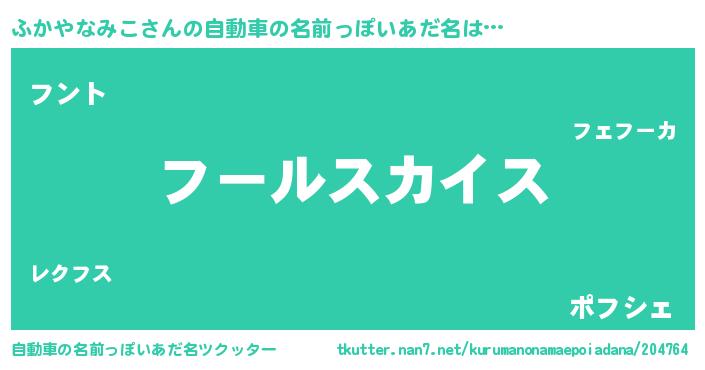 | 女子向けラノベタイトル風あだ名 | 『ふかやなみこの玉の輿計画!』 |