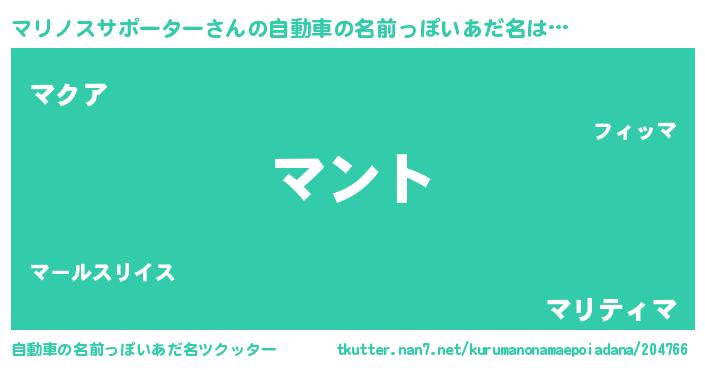 | 男性向けラノベタイトル風あだ名 | 『マリノスサポーターの嫁は女の子じゃないと思った?』 |